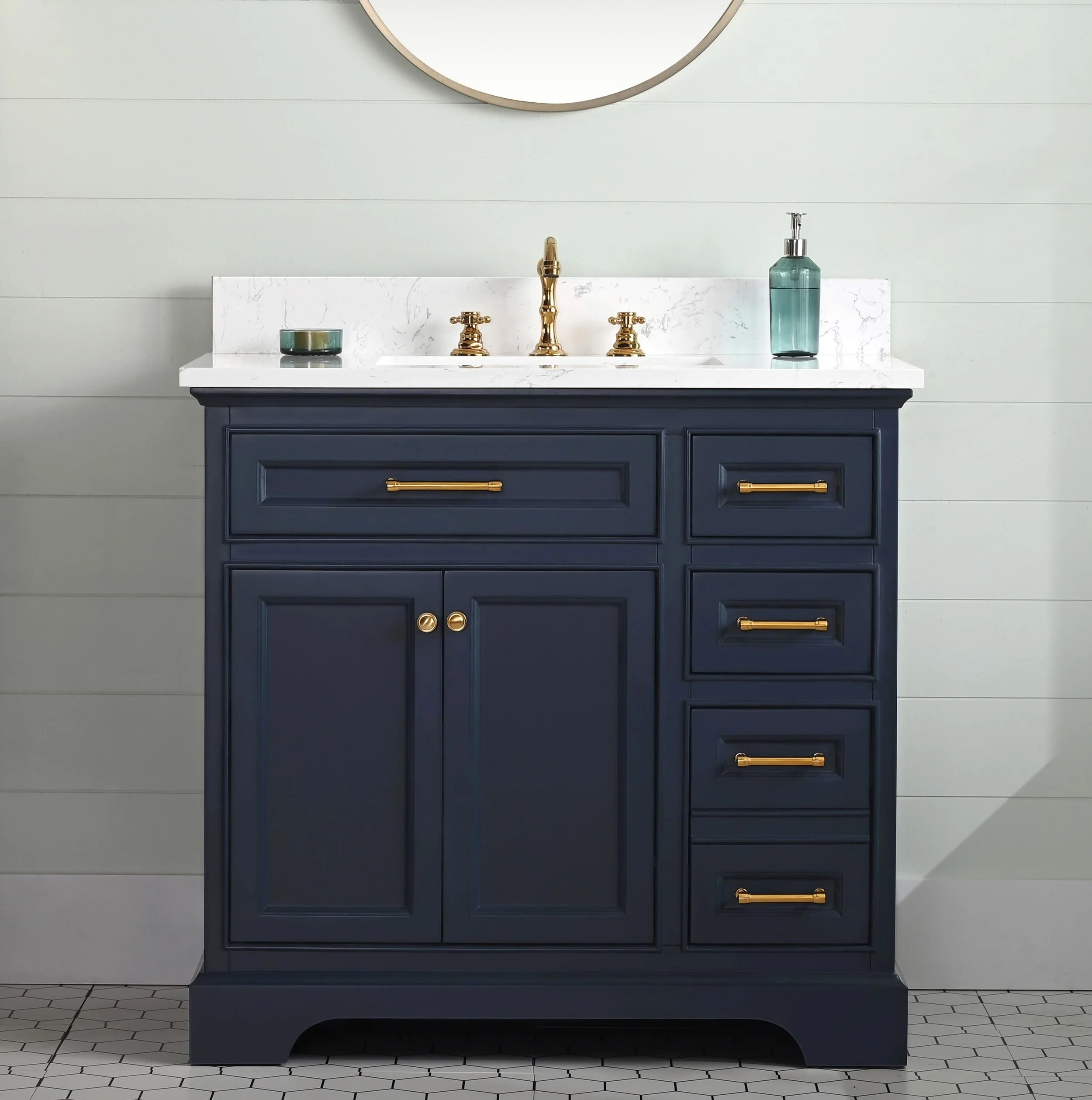 Cabinet with midnight blue finish.